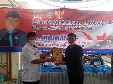 Kinni.id, Bandar Lampung – Budiman AS, Anggota DPRD Provinsi Lampung menggelar Sosialisasi Pembinaan Ideologi Pancasila dan Wawasan Kebangsaan. Bersama mahasiswa-mahasiswi di Bandar Lampung, di kedamaiannya, Minggu (21/03)
