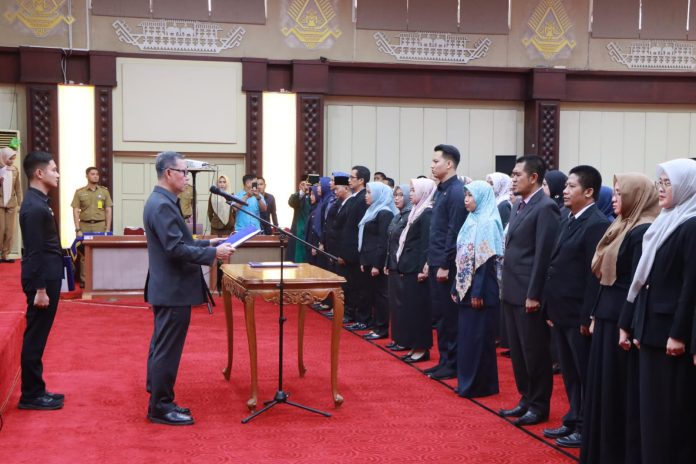 Kinni.id, Bandarlampung – Sekdaprov Lampung, Fahrizal Darminto melantik dan mengambil Sumpah Jabatan 46 Pejabat Fungsional di lingkungan Pemerintah Provinsi Lampung, di Gedung Pusiban, Selasa (21/11/2023).