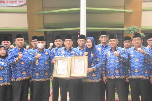 Sertifikat tersebut diserahkan langsung oleh Sekretaris Daerah (Sekda) Metro Ir. Bangkit.