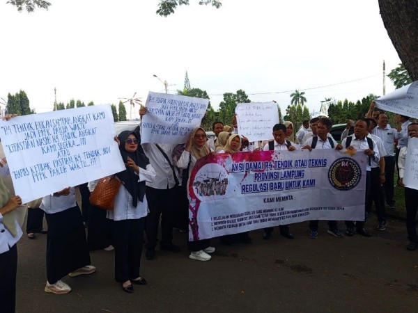 Aksi penyampaian aspirasi itu dilakukan puluhan tenaga kependidikan perwakilan dari berbagai daerah di Provinsi Lampung. Dalam orasinya, mereka menuntut kejelasan pengangkatan PPPK paruh waktu. Menurut mereka, meski sudah bertahun-tahun mengabdi, hingga kini belum juga diangkat menjadi PPPK.