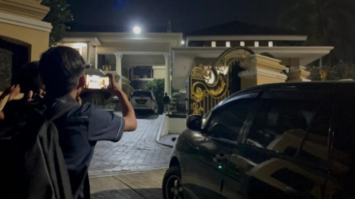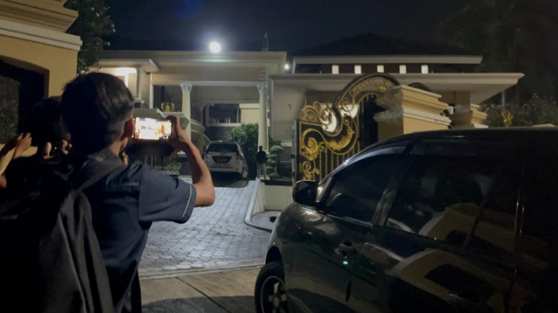 Pantauan di lokasi, sebuah mobil Toyota Innova hitam BE 2368 HT masuk ke halaman rumah. Beberapa kendaraan penegak hukum, termasuk mobil Polisi Militer, juga terlihat terparkir di sekitar area penggeledahan.