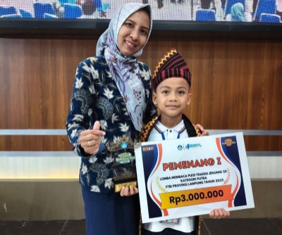 Kinni.id, Tulang Bawang – Kabar membanggakan datang dari SDN 01 Gunung Sakti. Salah satu siswanya, M. Azzam Raffasya Halim, berhasil meraih Juara 1 Umum dalam ajang Festival Tunas Bahasa Ibu (FTBI) kategori Membaca Puisi Tradisi jenjang SD tingkat Provinsi Lampung. Prestasi itu mengantarkan Azzam mewakili Provinsi Lampung ke tingkat nasional.