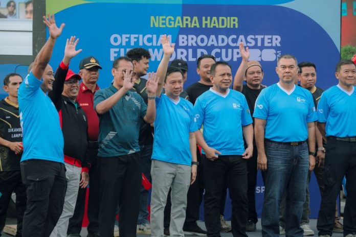 KINNI.ID, BANDARLAMPUNG – Sekretaris Daerah Provinsi Lampung Marindo Kurniawan melakukan Kick Off Siaran Piala Dunia 2026 yang diselenggarakan oleh TVRI Lampung di Tugu Adipura, BandarLampung, Minggu Pagi (1/2/2026).