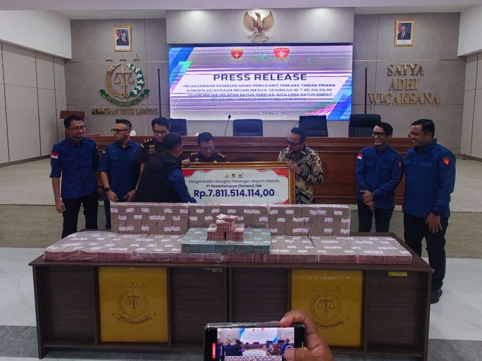 KINNI.ID, BANDAR LAMPUNG – Kejaksaan Tinggi (Kejati) Lampung mengeksekusi uang pengganti senilai Rp7,8 miliar dari perkara korupsi pembangunan Jalan Tol Terbanggi Besar-Pematang Panggang-Kayu Agung (Terpeka).